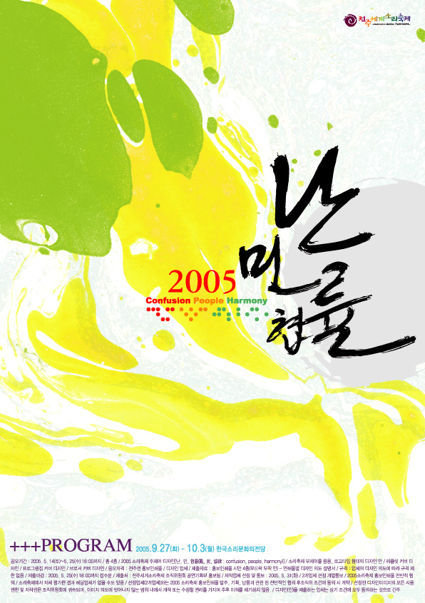 그림의 느낌이 좋네여~~ 소리가 팍팍느껴지는데욤^^ 저런 글씨 화방에 가서 쓰는데 3,000~15,000원(대구)하면 씁니당!! 글자를 스켄 받아 tiff파일로 사용하심 되죵^^