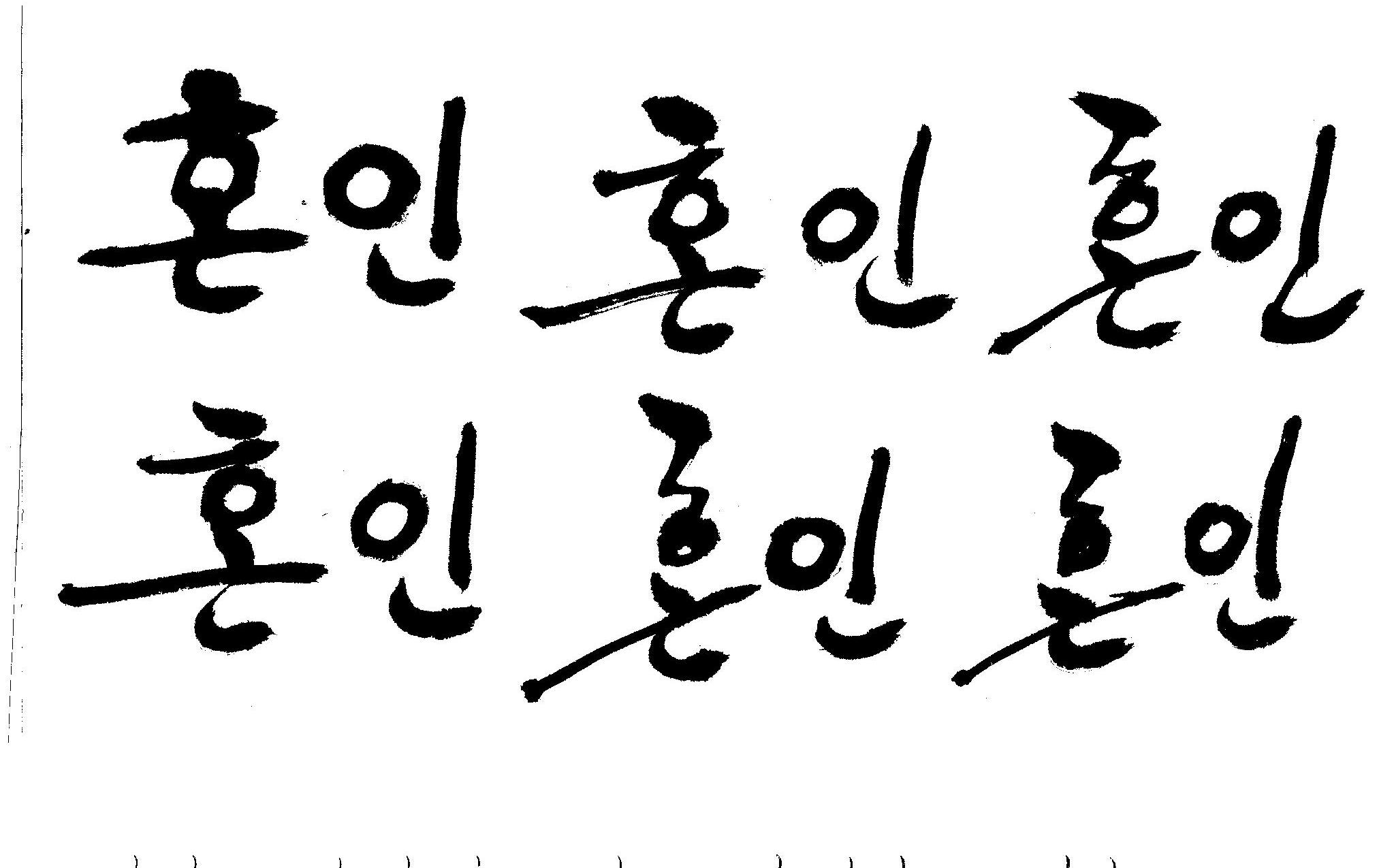 캘리부탁드려욤 .. >_< 김철호 일반 0 9502 2008.12.26 17:33 > > 안녕하세요 > 청첩장을 만들게 되었는데 > 고전적인 느낌으로 그림을 그렸거든요.. > 그런데 앞에 > > '혼인' 이라는 글씨를 한문으로 적어 넣고 싶은데.. > 한글이라두 괜찮아욤!!! ㅠㅠ > 캘리해보려고 시도는 해봤지만 너무 어려워서리..... ㅠㅠ > > [ 婚姻 ] <- (혼인할혼 , 혼인인 ) > > 캘리 부탁드릴수 있을까요?? > 도와주세요~ > 한글로 올립니다. 유용하게 쓰시길..