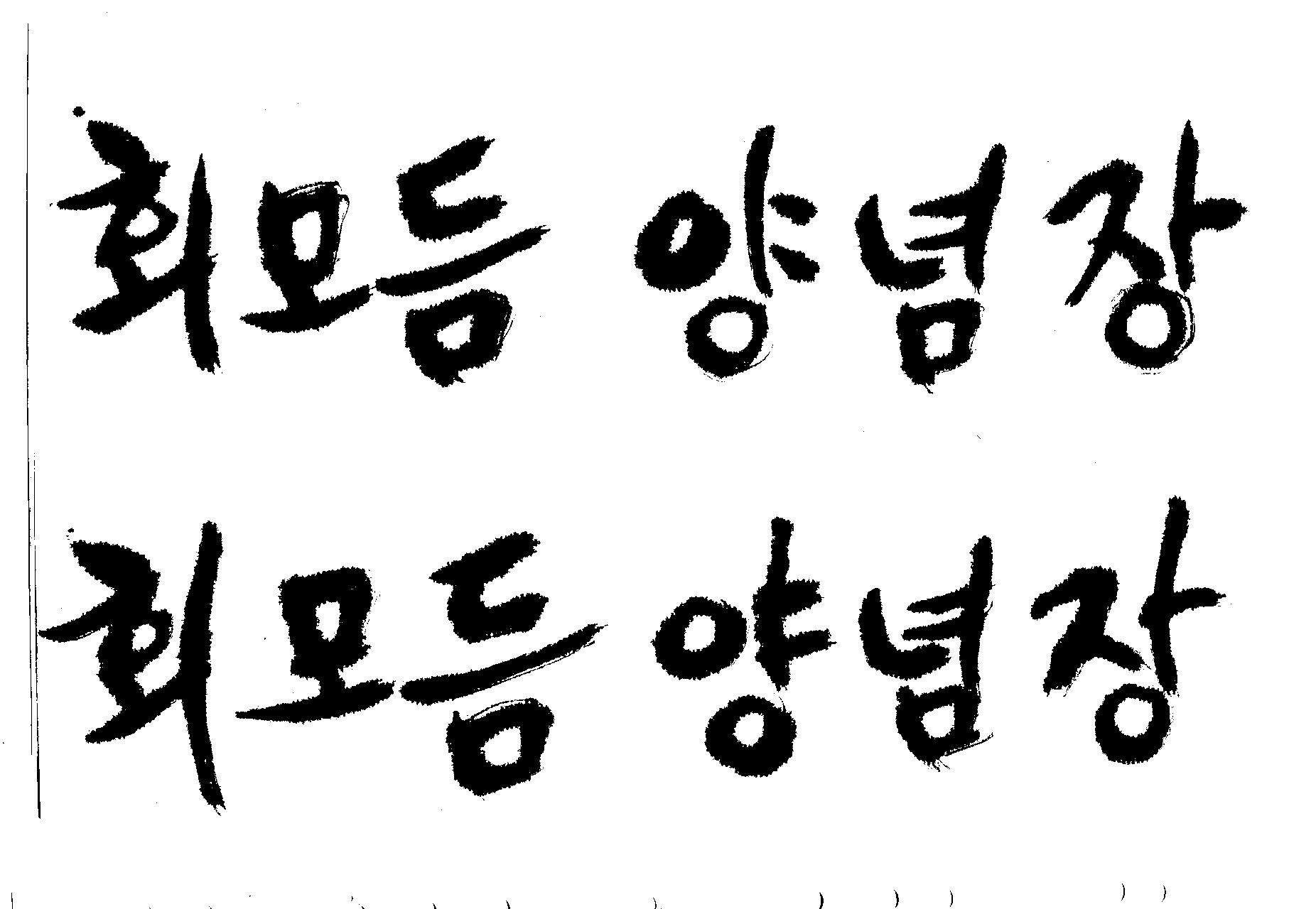 캘리 요청] 부탁드립니다. 김철호 일반 1 6017 2009.06.03 12:13 > > 첨부한 이미지에 보이시는 캘리와 유사한 형태로 > 부탁드립니다. > 내용은 " 회모듬 양념장 " 입니다. > > 도와주십시오. (__ ) > 유용하게 쓰세요..