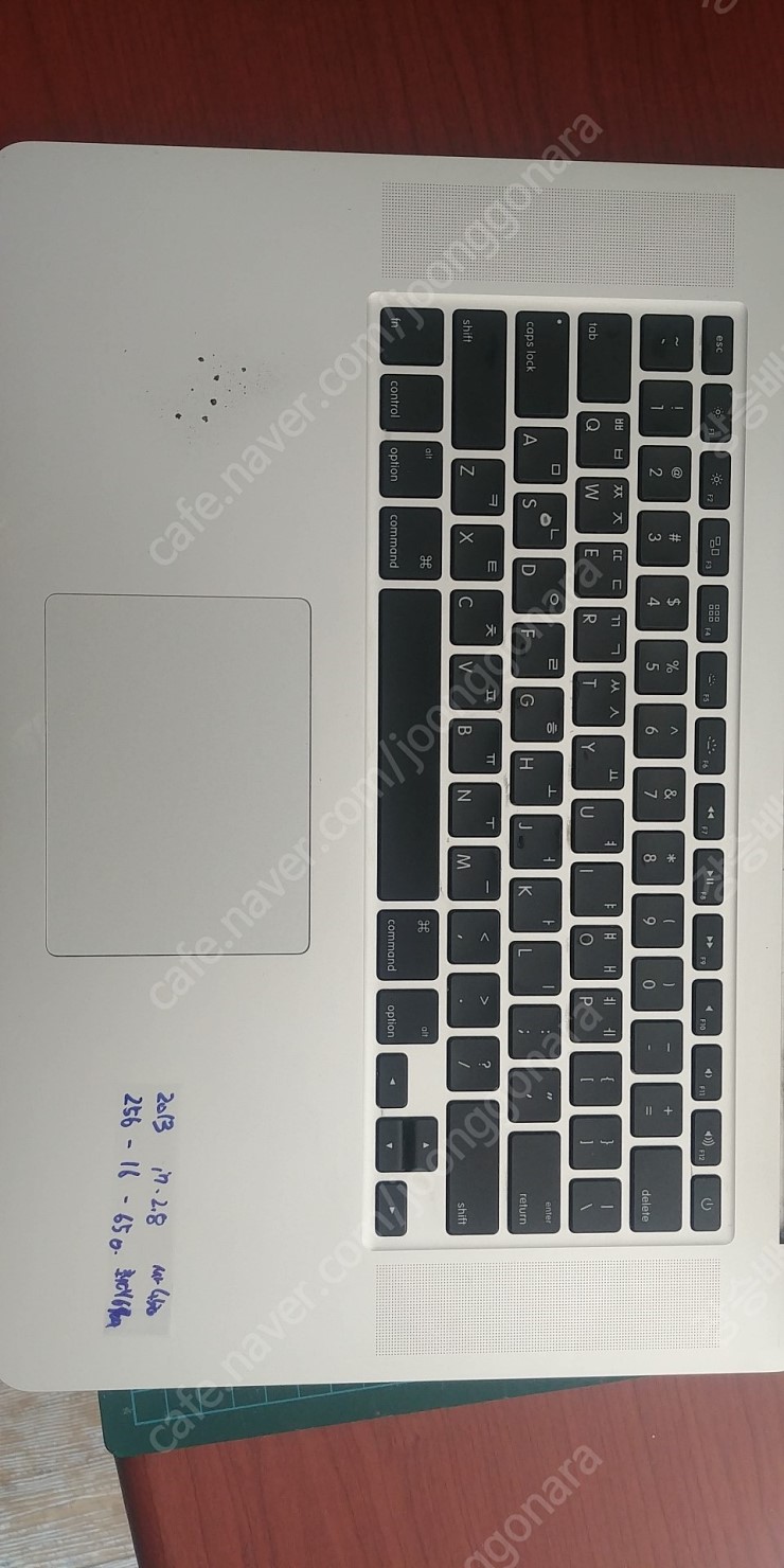 외관 상태: 키보드 ㄴ자 닳음 터치패드 옆 왼쪽 쇠판 칠벗겨짐 / 상판액정이슈교체로 쌔거